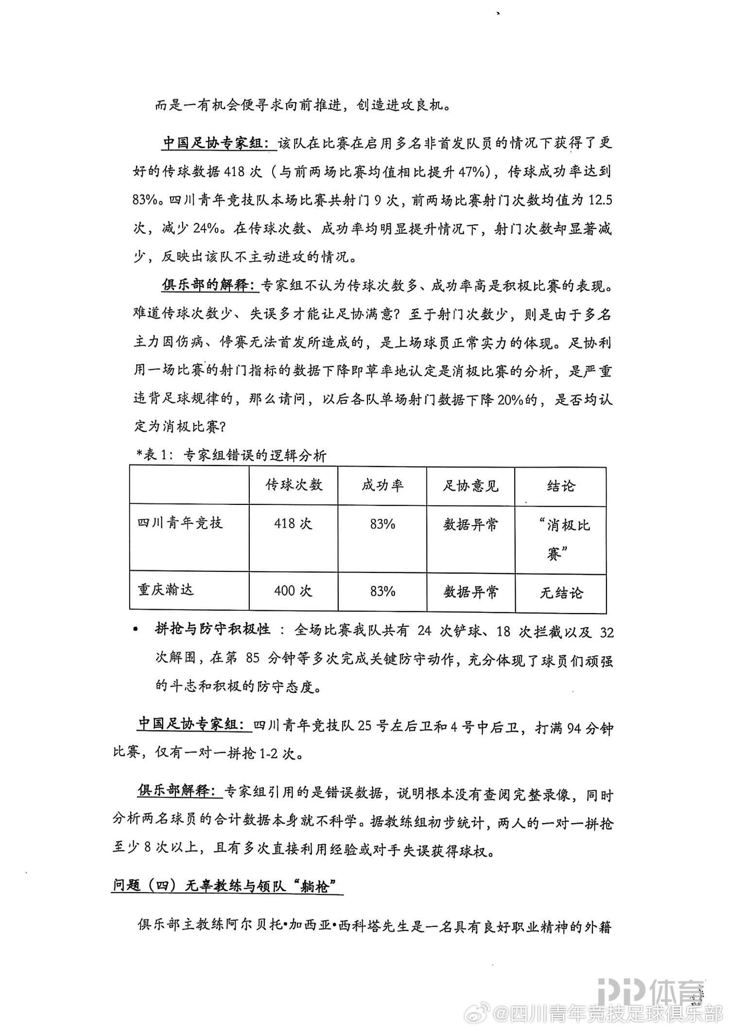 今日,四川青年竞技官方发布声明,回应足协的处罚决定。