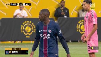世俱杯1/8决赛对阵迈阿密国际的比赛中,巴黎圣日耳曼前锋奥斯曼-登贝莱在第62分钟替补出场。
